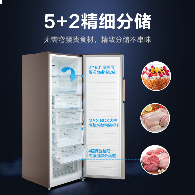 • 美的(Midea)240升单温风冷无霜客厅立式冷冻冰柜家用 分区抽屉节能保鲜母婴母乳冷柜BD/BC-240WE