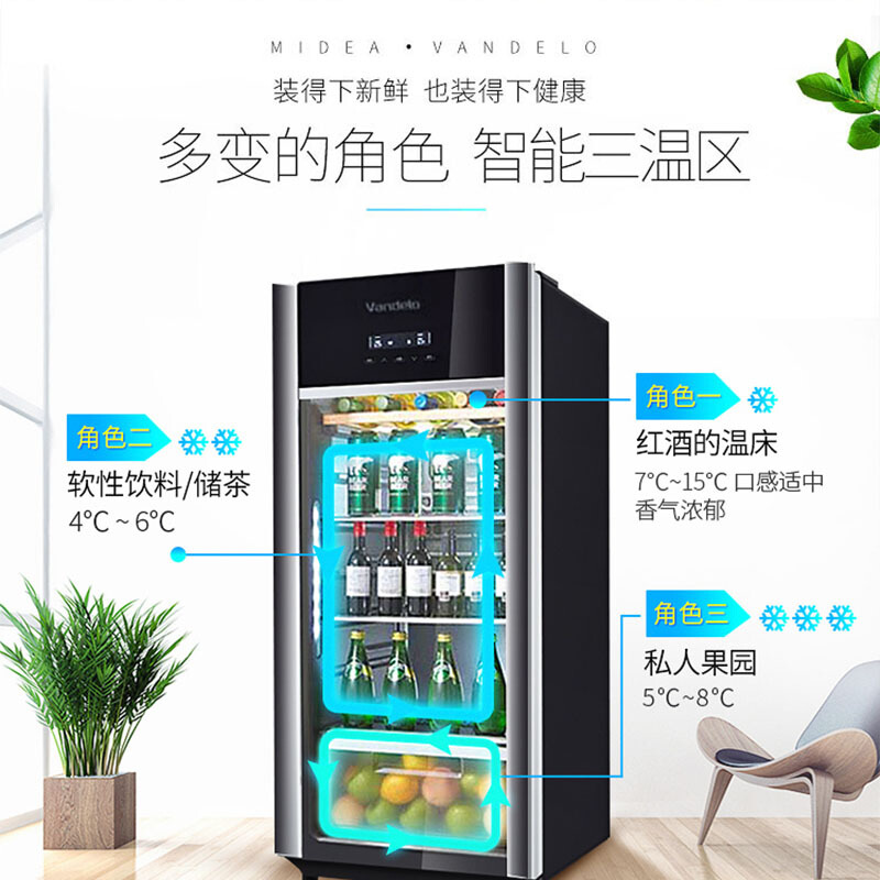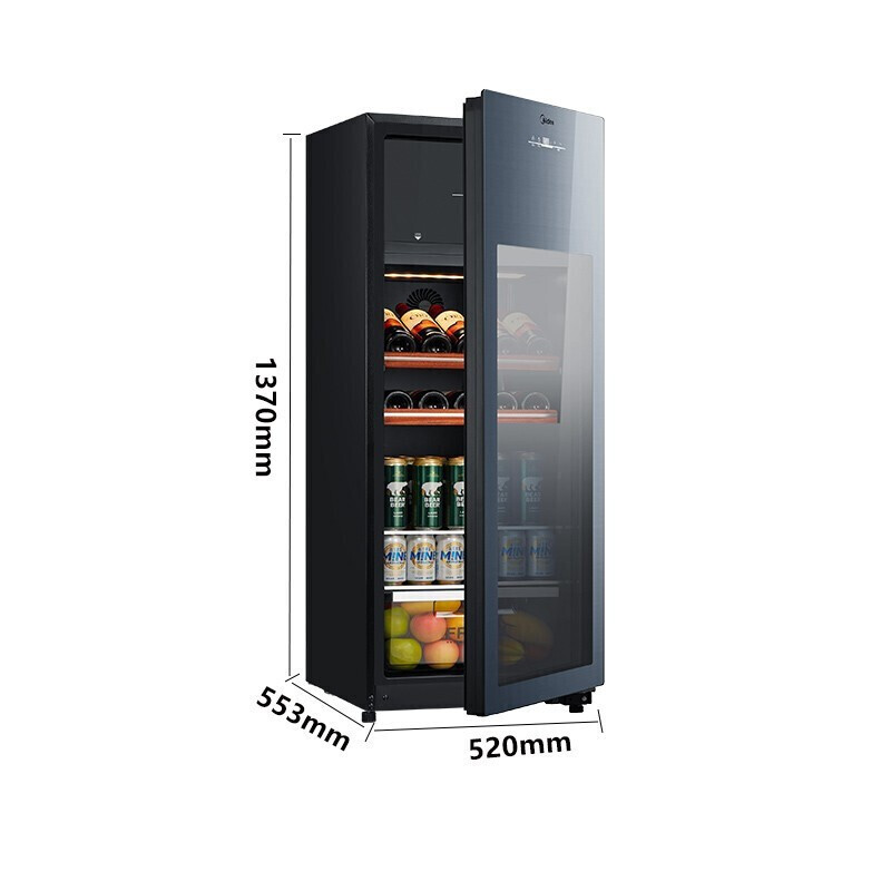 美的(Midea)家用冷藏柜红酒柜保鲜柜客厅立式玻璃办公室冷柜一级节能省电低音智能酒柜 JC-160GEM升级冷冻室设计(高1.37米)