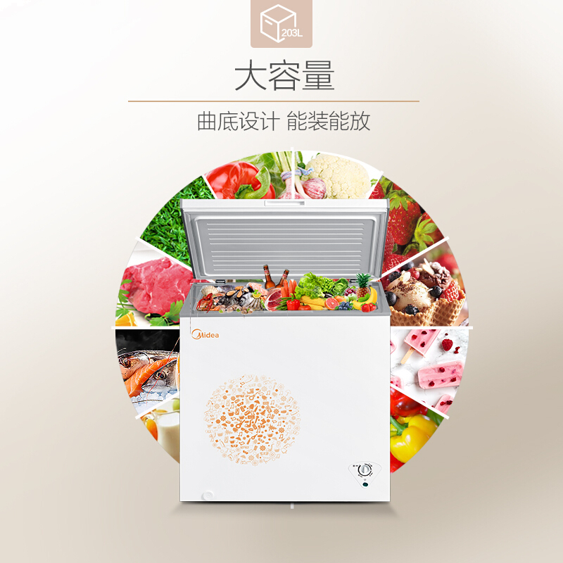 • 美的(Midea)203升冷藏冷冻囤货冰柜家商用大冷柜一级能效卧式冰箱BD/BC-203KMD(E)