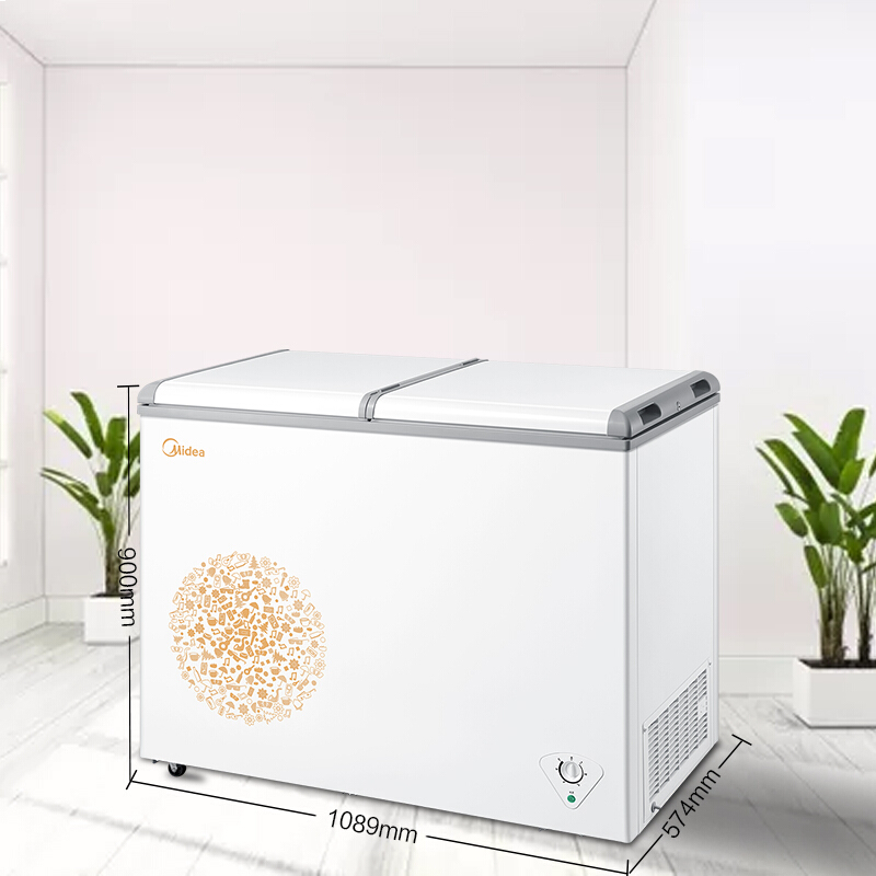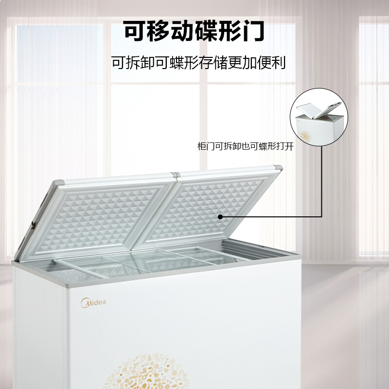• 美的(Midea)220升 家用商用冰柜 双箱双温冷柜 蝶形门侧掀门 冷藏冷冻卧式冰箱 BCD-220VM(E)