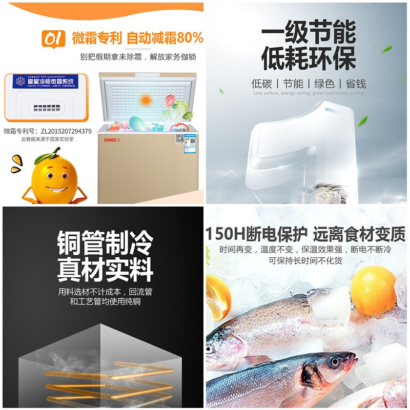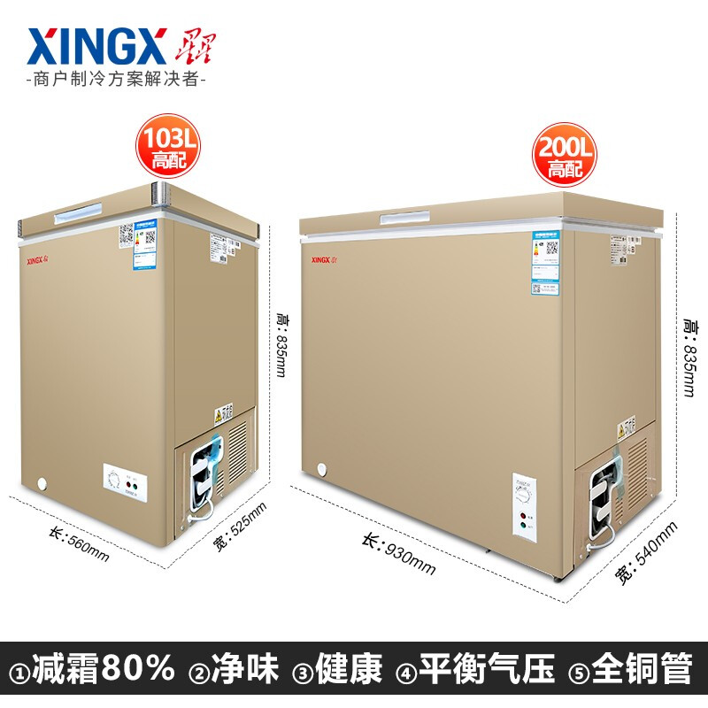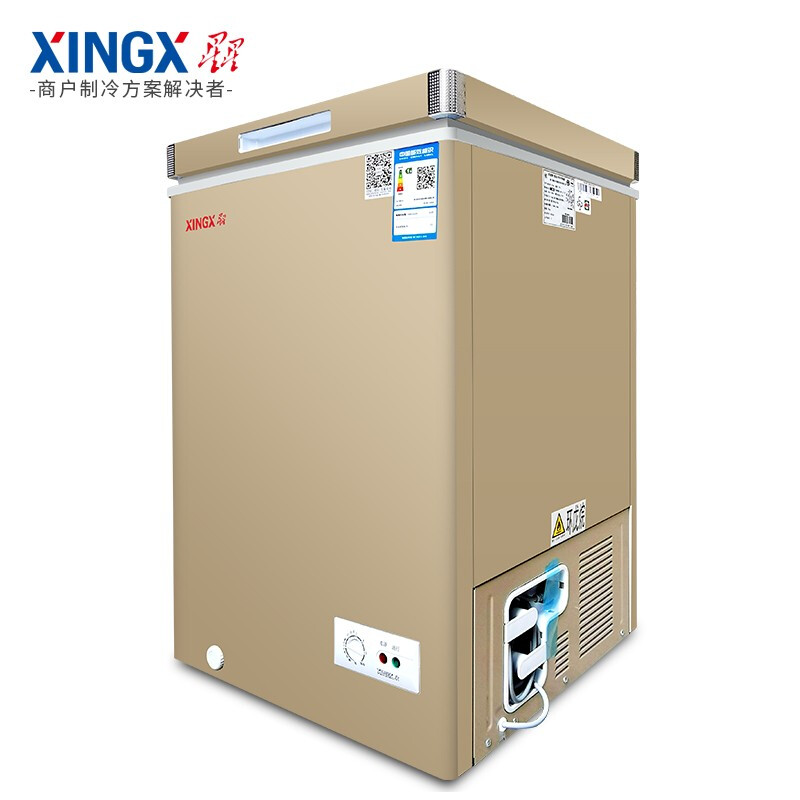 • 星星(XINGX)家用节能冷柜 小型冰柜单温卧式冷藏冷冻可转换柜 微霜系统自动减霜80% 一级能效 140升金色约装190斤鲜肉【自动减霜80%】