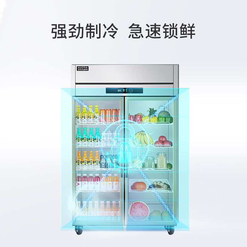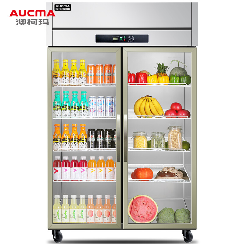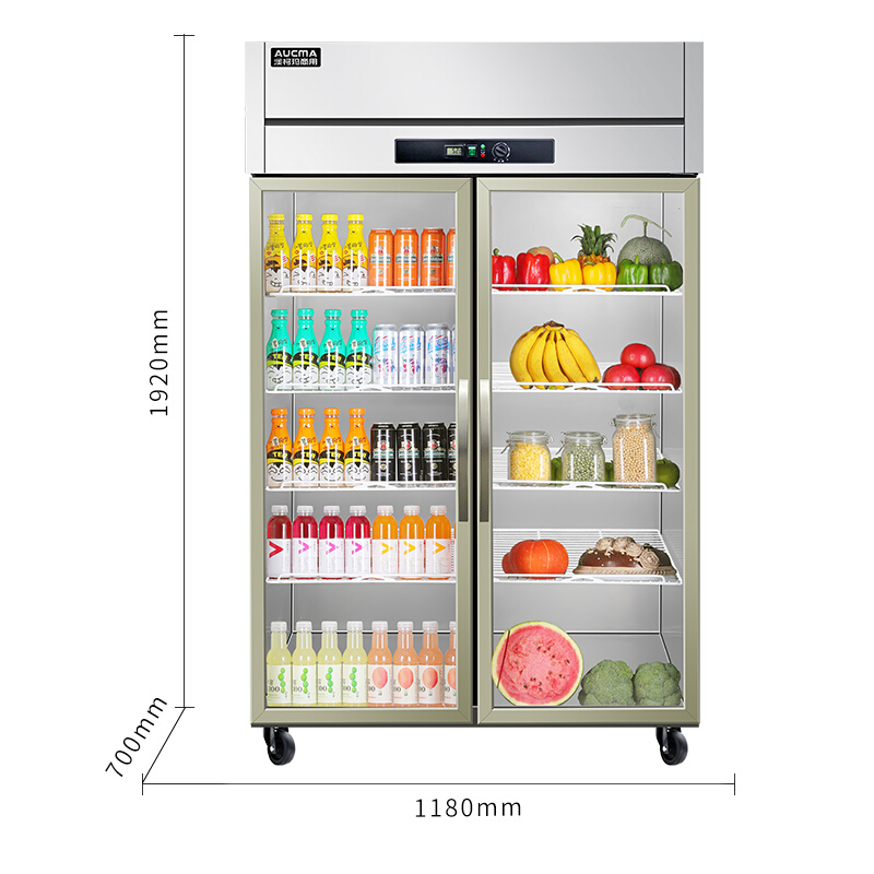 • 澳柯玛VC-879YT 商用立式双门展示柜 水果蔬菜保鲜冰柜 全冷藏玻璃门厨房冰箱