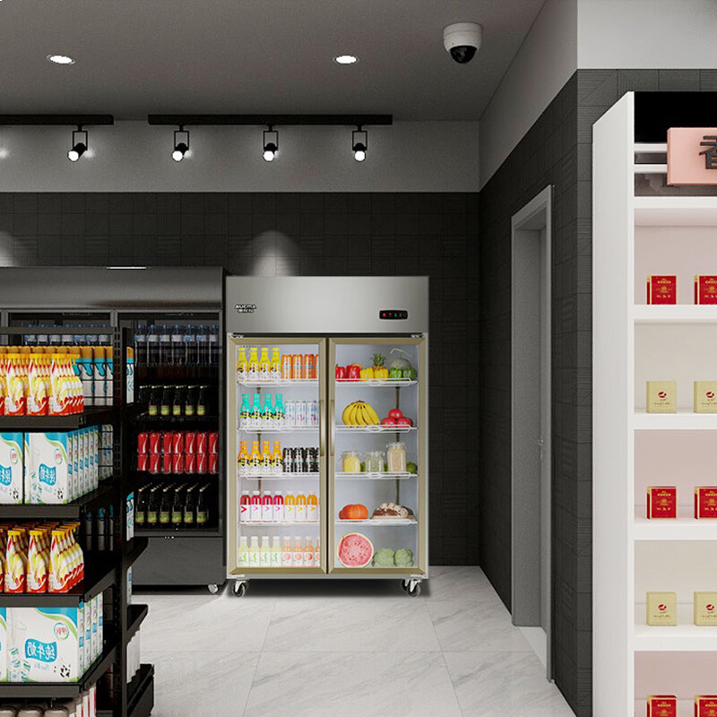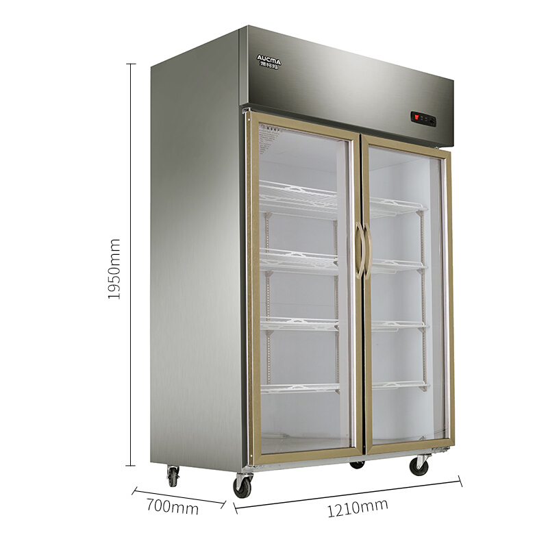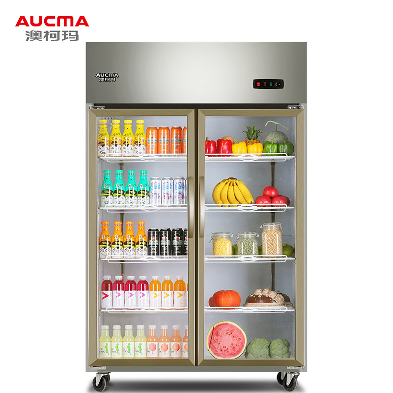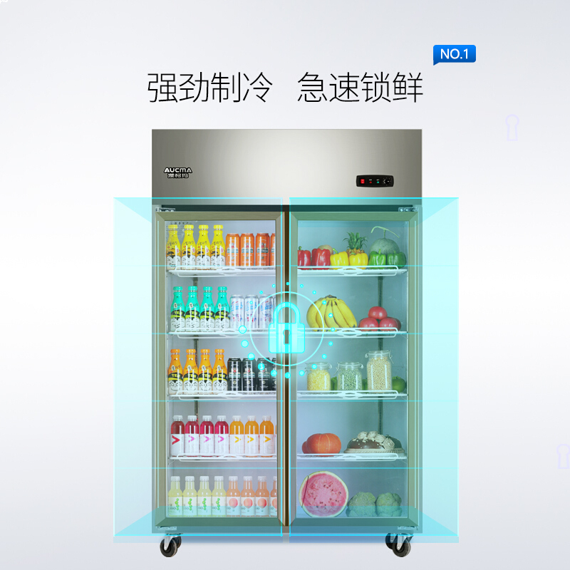 • 澳柯玛VC-880D 商用立式双门展示柜 水果蔬菜保鲜冰柜 全冷藏玻璃门厨房冰箱