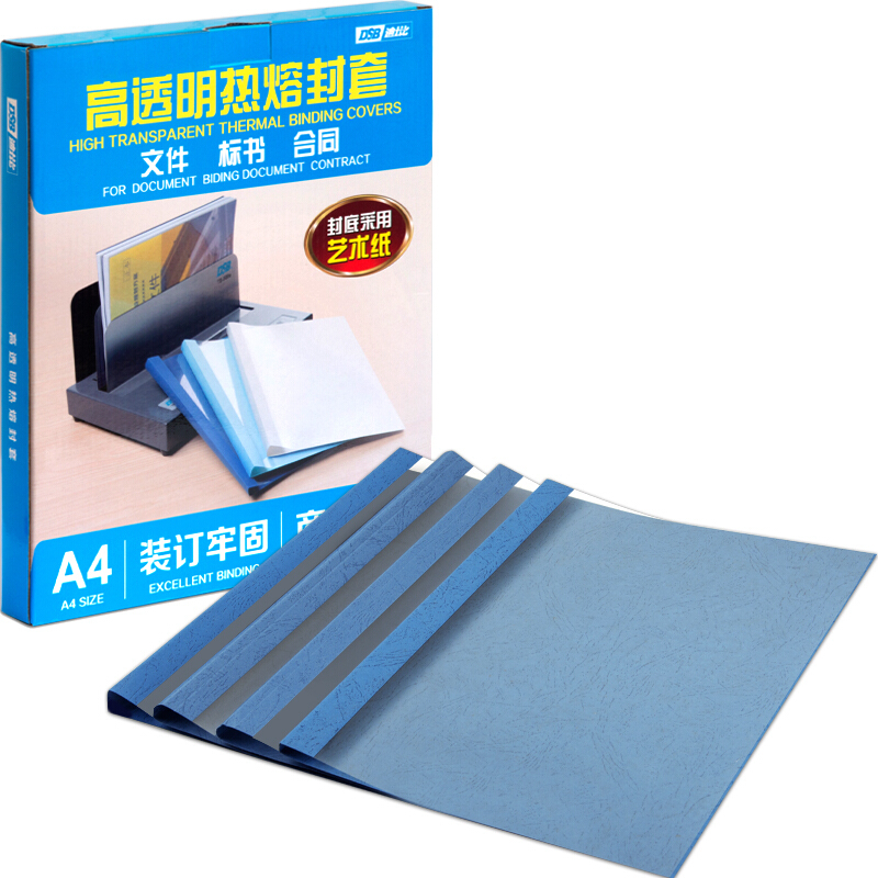 • DSB 热熔封套 A4 20mm 装订200页 蓝色 20个/盒 超高透明 艺术纸封皮 胶装封面