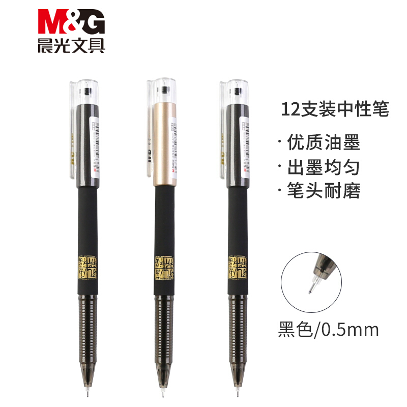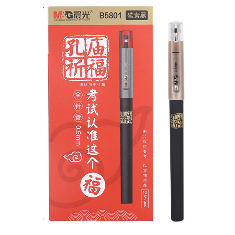 • 晨光AGPB5801/0.5mm碳素黑中性笔 全针管签字笔 孔庙祈福系列水笔 12支/盒