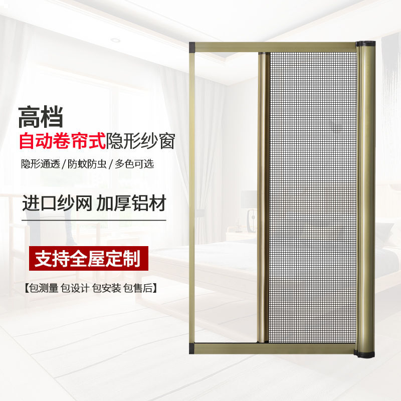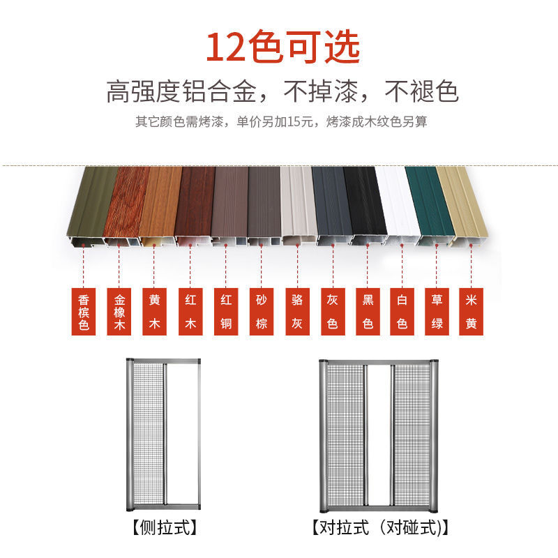 隐形纱窗门折叠纱门推拉式门帘铝合金防蚊虫自装伸缩磁吸单开双开纱门 防水纱+低轨红木纹框加厚1.0