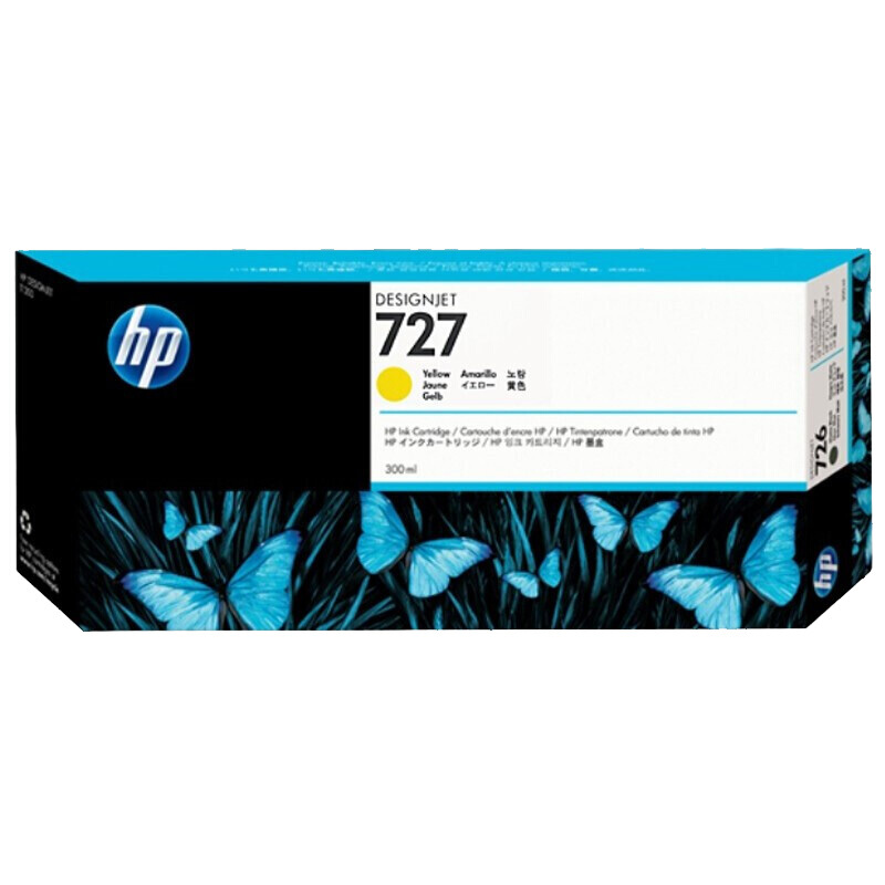 - 惠普727号原装墨盒 (F9J78A) 黄色Y (适用T920/T930/T1500/T250绘图仪打印机) 300ML