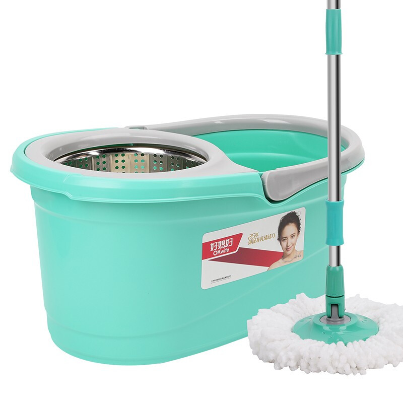• 好媳妇旋转拖把桶 自动双驱动 木地板拖布好神拖墩布 免手洗拖把 2个头+薄荷绿+不锈钢脱水篮(7405)