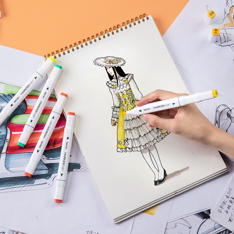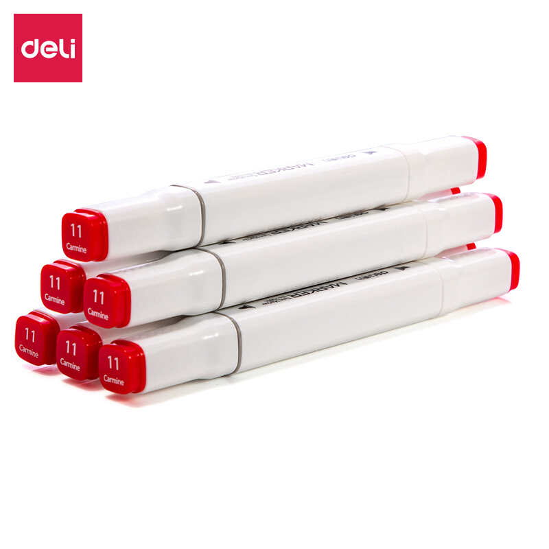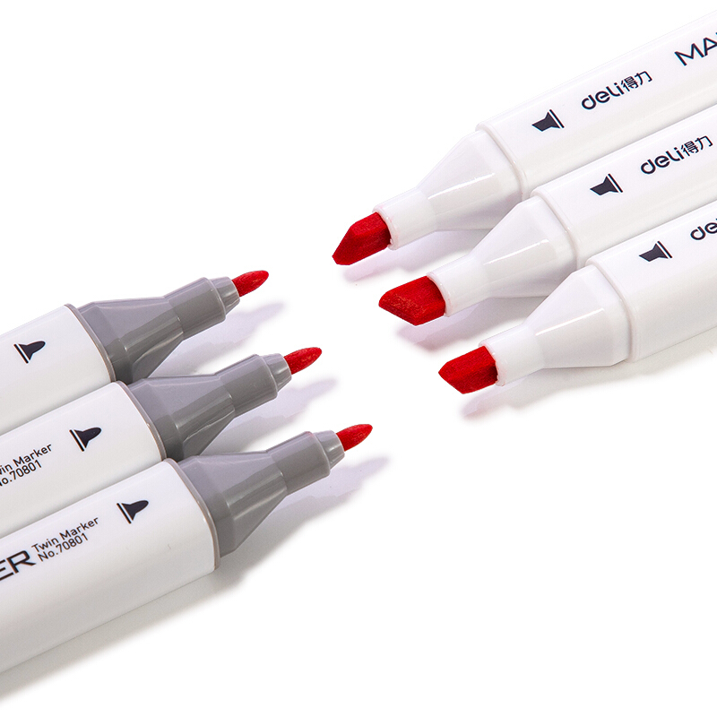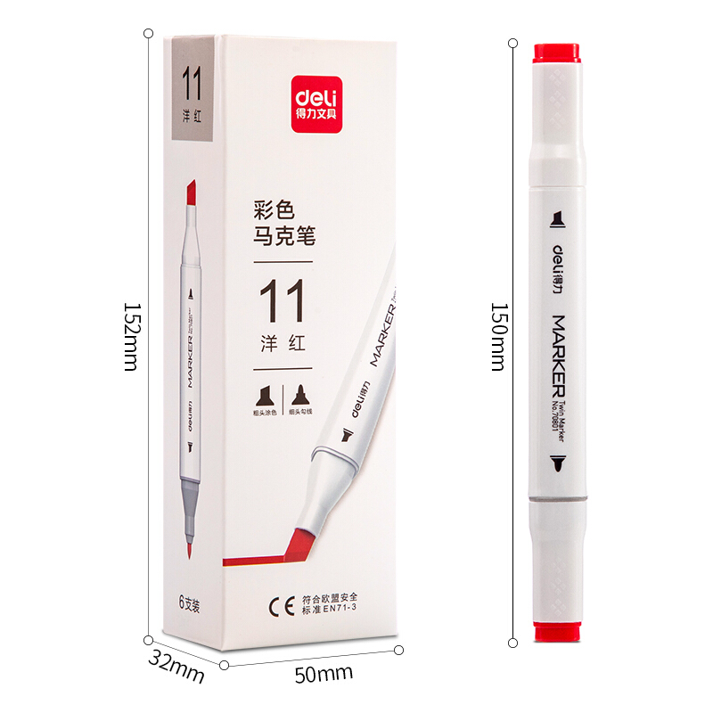 • 得力70801A 双头专业马克笔套装学生手绘漫画设计绘画彩笔画笔6支单色方杆 11号洋红