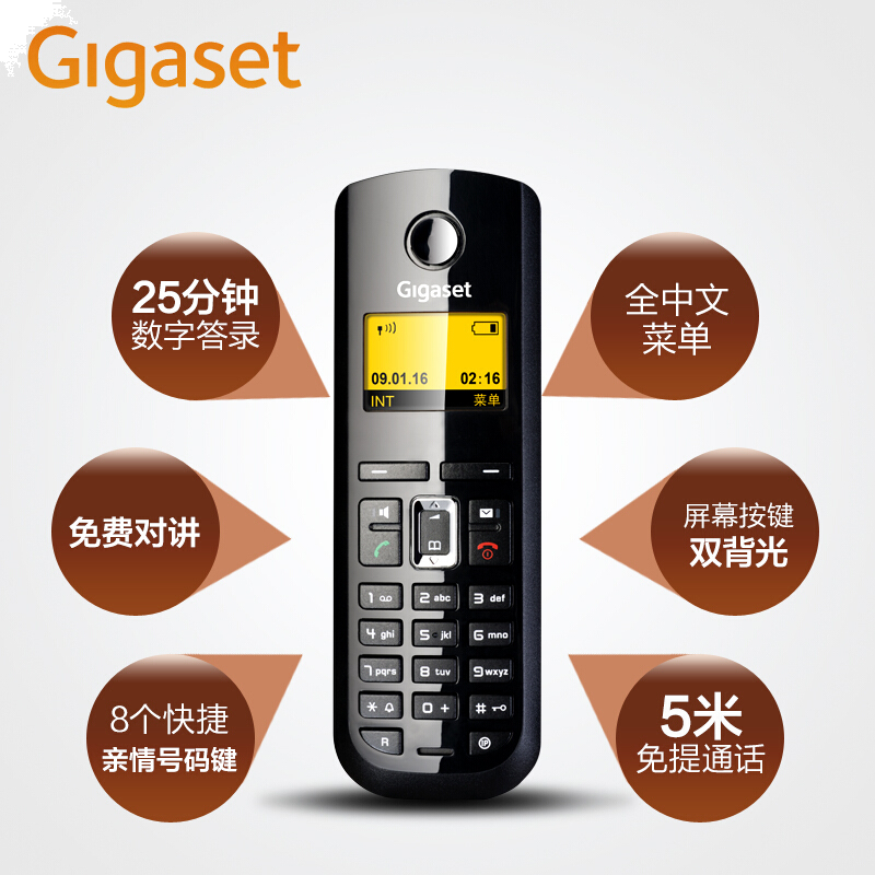• 集怡嘉(Gigaset)无绳电话机 无线座机 子母机 办公家用 录音留言 中文菜单 原西门子C585单机(白)