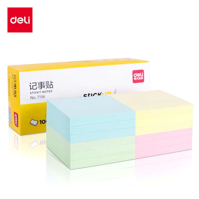 • 得力(deli)12本彩色便利贴粘性便签纸 76*76mm备忘留言纸/记事贴/N次贴办公用品 7156
