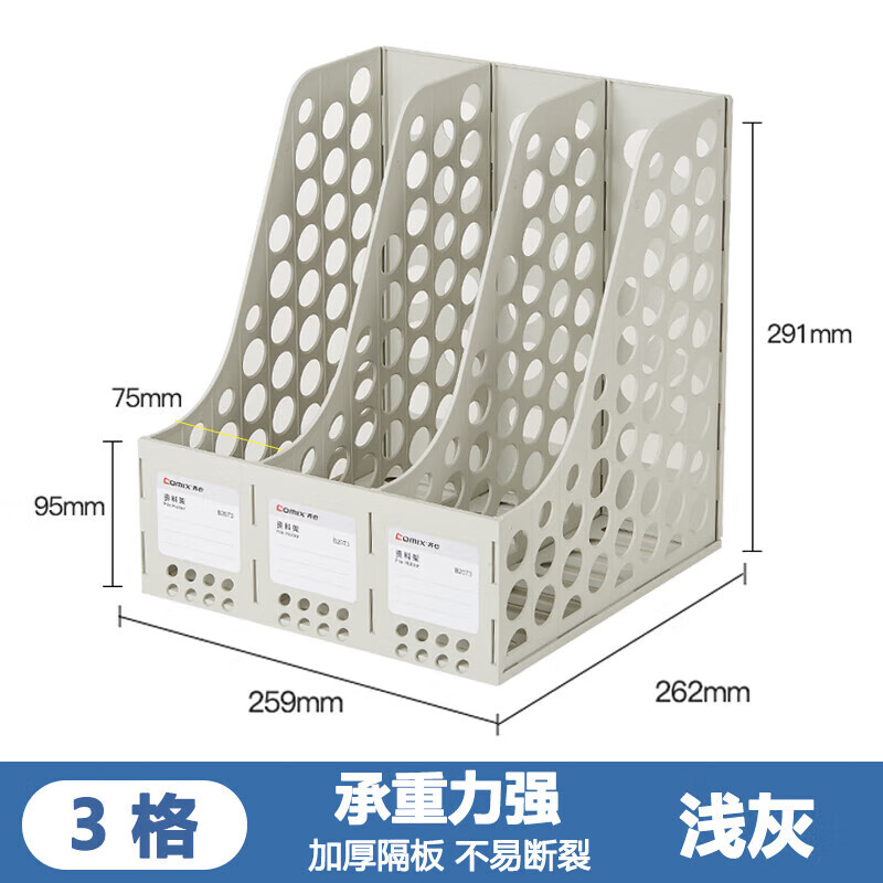 • 齐心(COMIX)三联桌面资料架 镂空网格文件框 带标签分类收纳文件柜 灰色 单个装 B2073