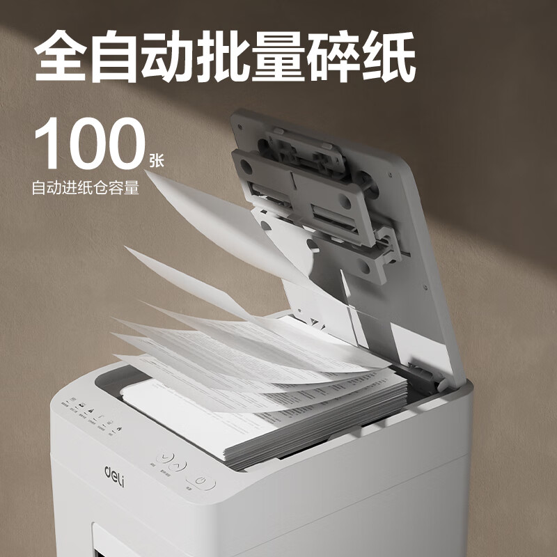 • 得力(deli)G1自动进纸碎纸机 5级保密 单次手动8张/自动110张 26L可视容量 自动90分钟碎纸时间