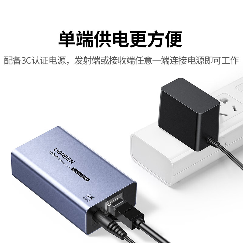 • 绿联HDMI延长器70米 4K60Hz高清单网线RJ45转HDMI视频传输器网传转换器 网络信号放大器 一对装 65366