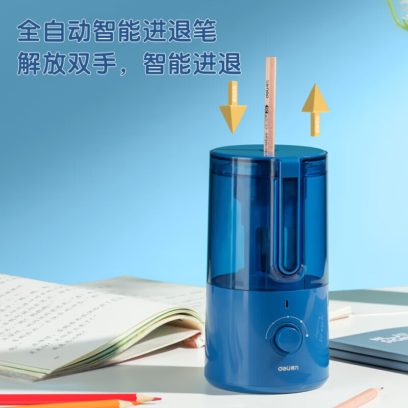 • 得力 全自动削笔机卷笔刀可充电锂电池5档粗细可调8mm削笔器开学考试礼物 黑色VA8-1