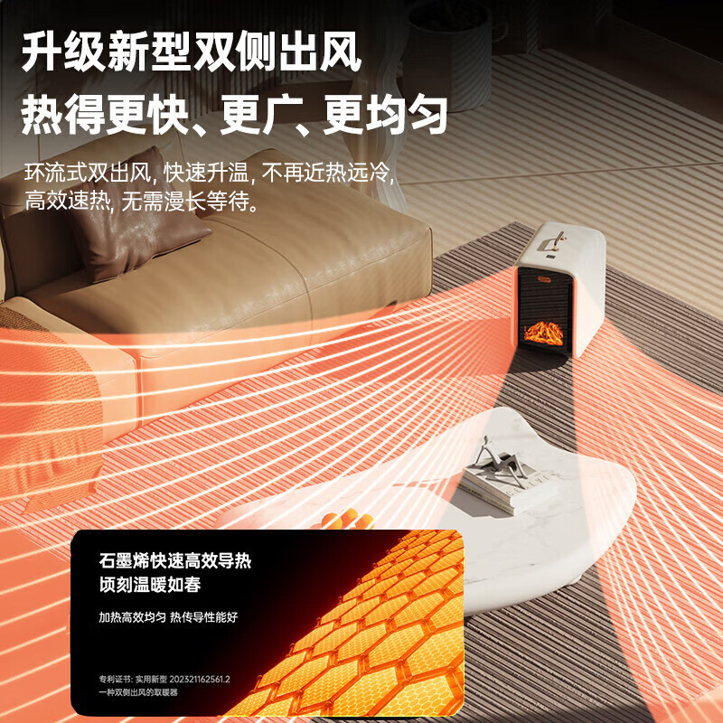 • 先锋(SINGFUN)石墨烯取暖器家用恒温节能速热暖风机仿真火焰壁炉电暖器IPX4防水热风机遥控电暖气烤火炉DNF-TH1R