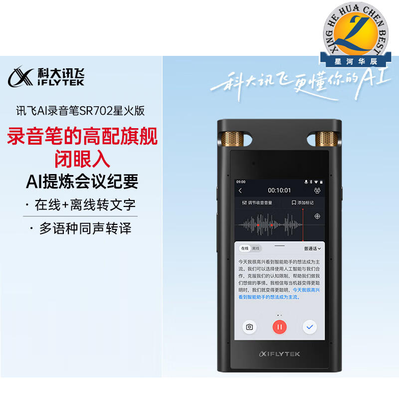• 科大讯飞AI录音笔S6 Plus 免费录音转文字 同声转译 会议纪要 专业录音设备录音神器 超远距离录音机 128GB