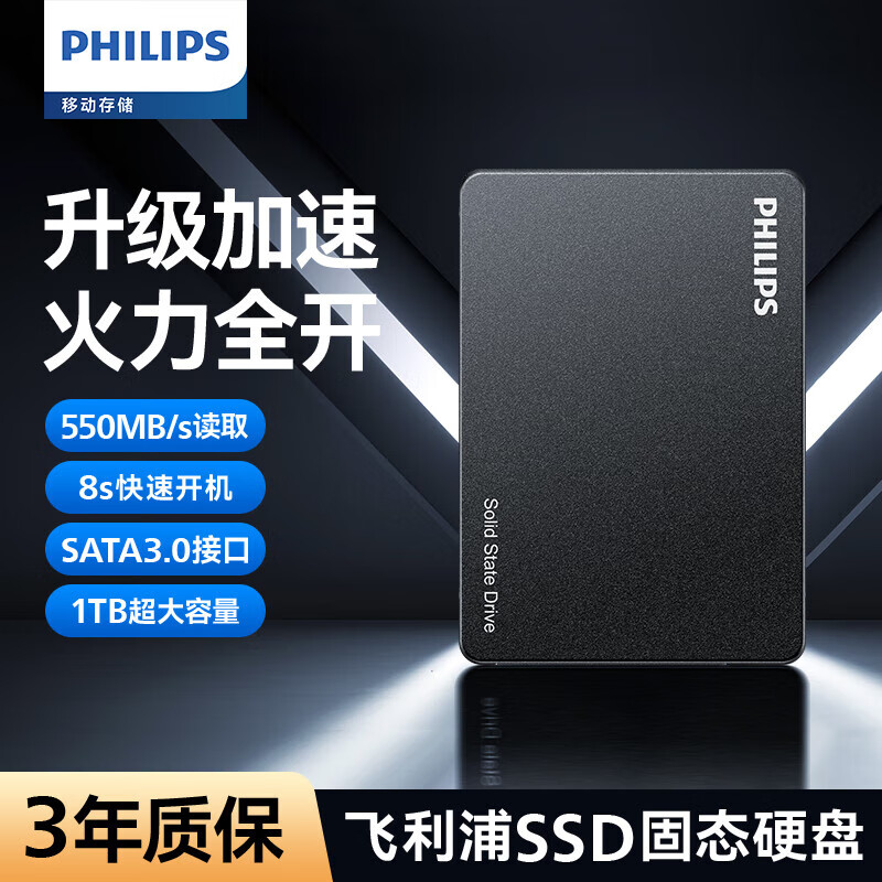 • 飞利浦 SSD固态硬盘550M/S SATA3.0接口 笔记本台式机通用SATA3.0高速全新读速 曜黑色550M/S 【256G】SATA3.0