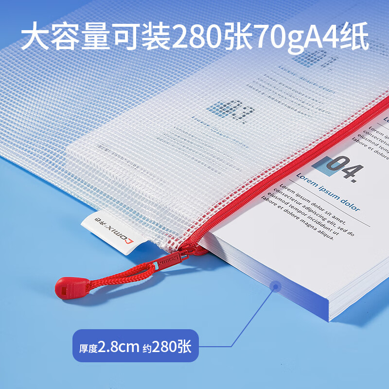 • 齐心(COMIX)10只A4文件袋透明拉链袋 EA1054