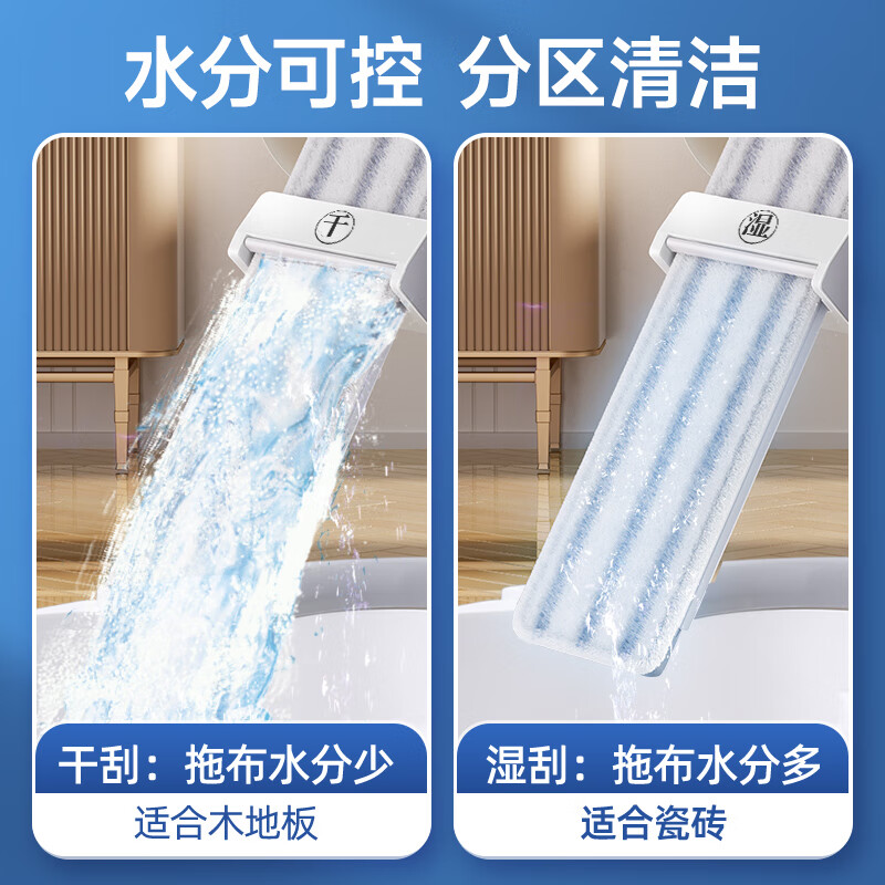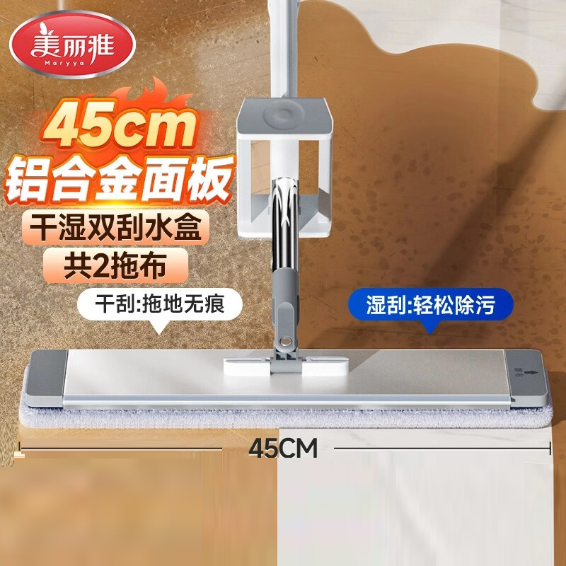 • 美丽雅平板大拖把45cm2布铝合金面板干湿双刮家用一拖净免手洗吸水墩布
