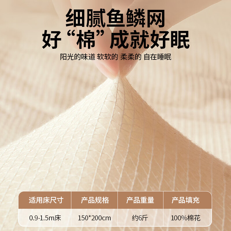 • 无印良品100%新疆棉花被子棉絮盖被垫被褥子秋冬季加厚棉胎被芯6斤150x200