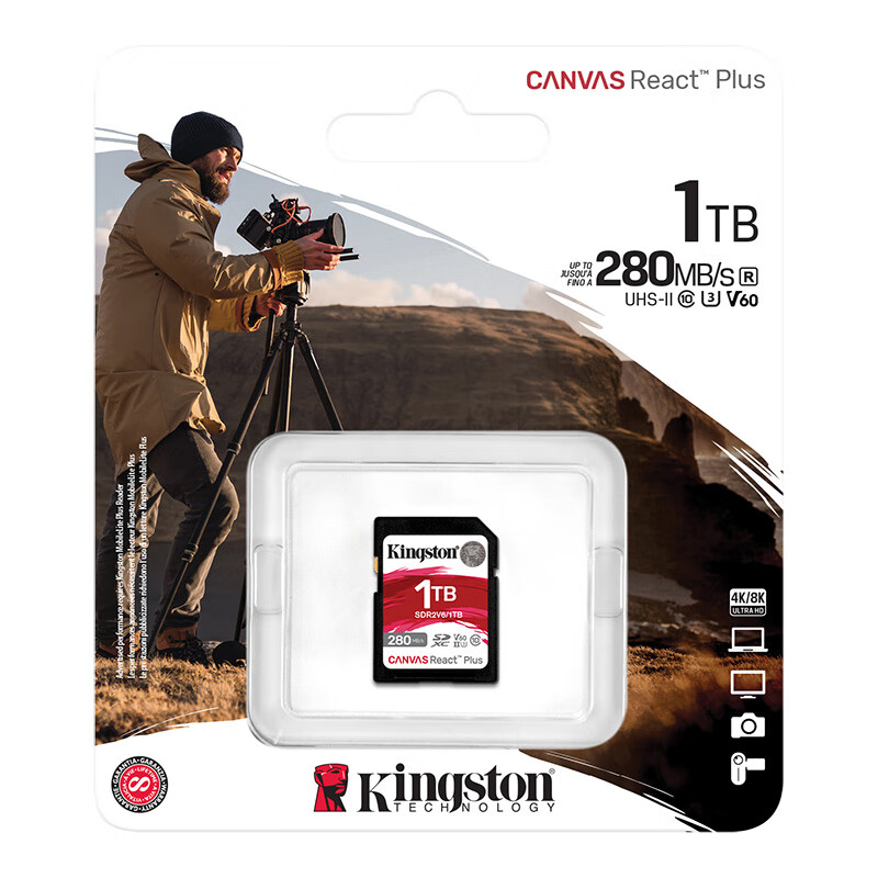 • 金士顿(Kingston)1TB SD存储卡 U3 V60 4K 数码相机内存卡 读速280MB/s 写速150MB/s 微单/单反相机