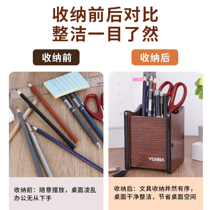 • 优必利 木质笔筒桌面收纳盒 方形笔筒 办公桌整理架商务桌面收纳 6002A