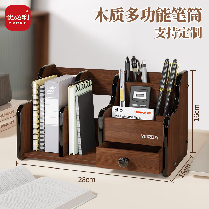 优必利 木质笔筒桌面收纳盒 组合办公桌整理架 桌面抽屉收纳座 6021A