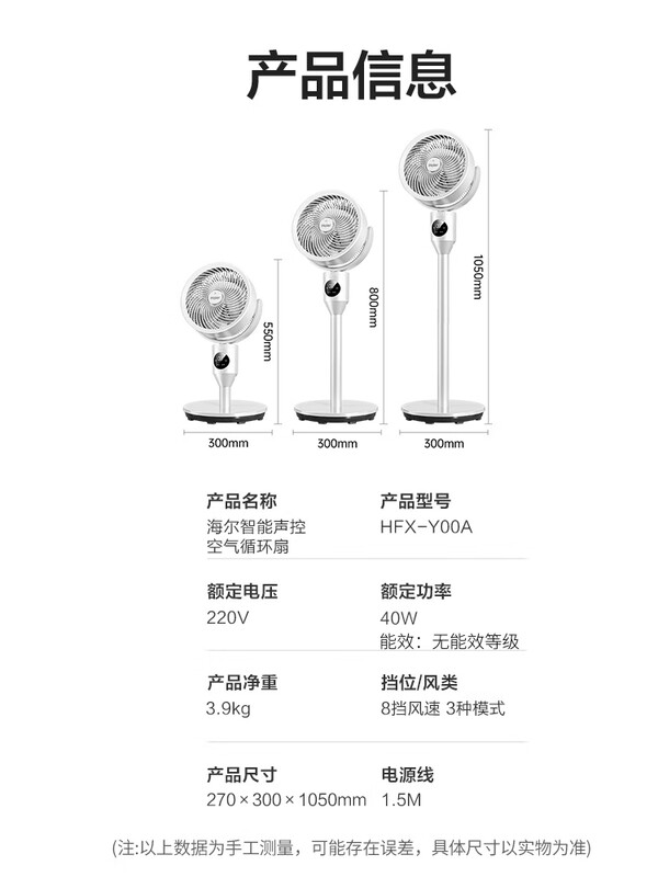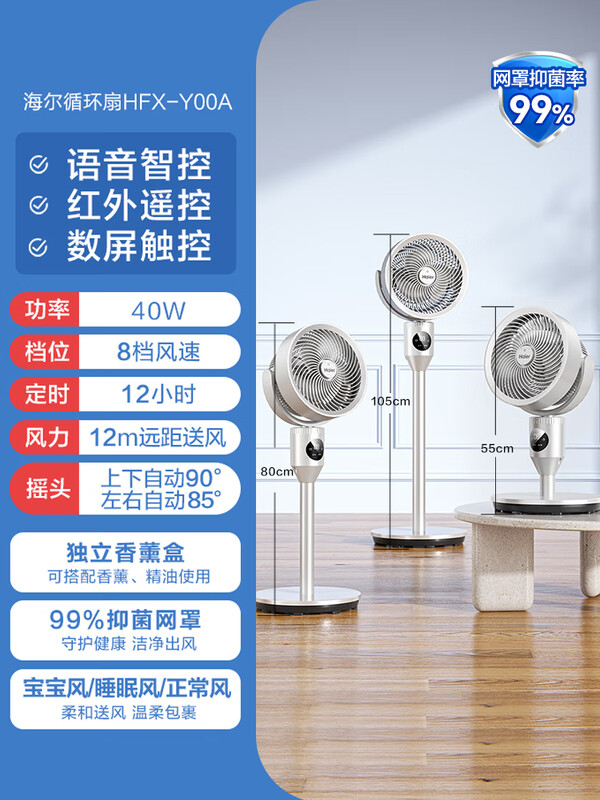 海尔(Haier)空气循环扇语音遥控香薰抑菌交流定频电风扇家用卧室轻音风扇落地扇省电台式小风扇空调扇HFX-Y00A