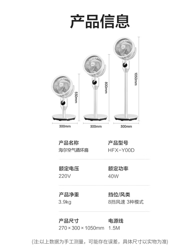 • 海尔(Haier)空气循环扇遥控触屏香薰抑菌电风扇交流定频家用卧室轻音风扇落地省电台式小风扇空调扇HFX-Y00D