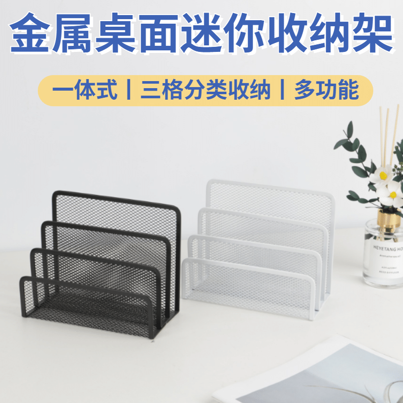 • 国产金属文件架迷你三档信笺收纳架置物架资料架桌面小号文件整理架书立架票据文具信封专用收纳架子 金属资料架