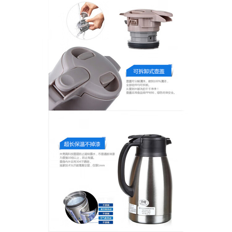 象印SH-HA10C-XA 不锈钢色保温保冷水壶 1L