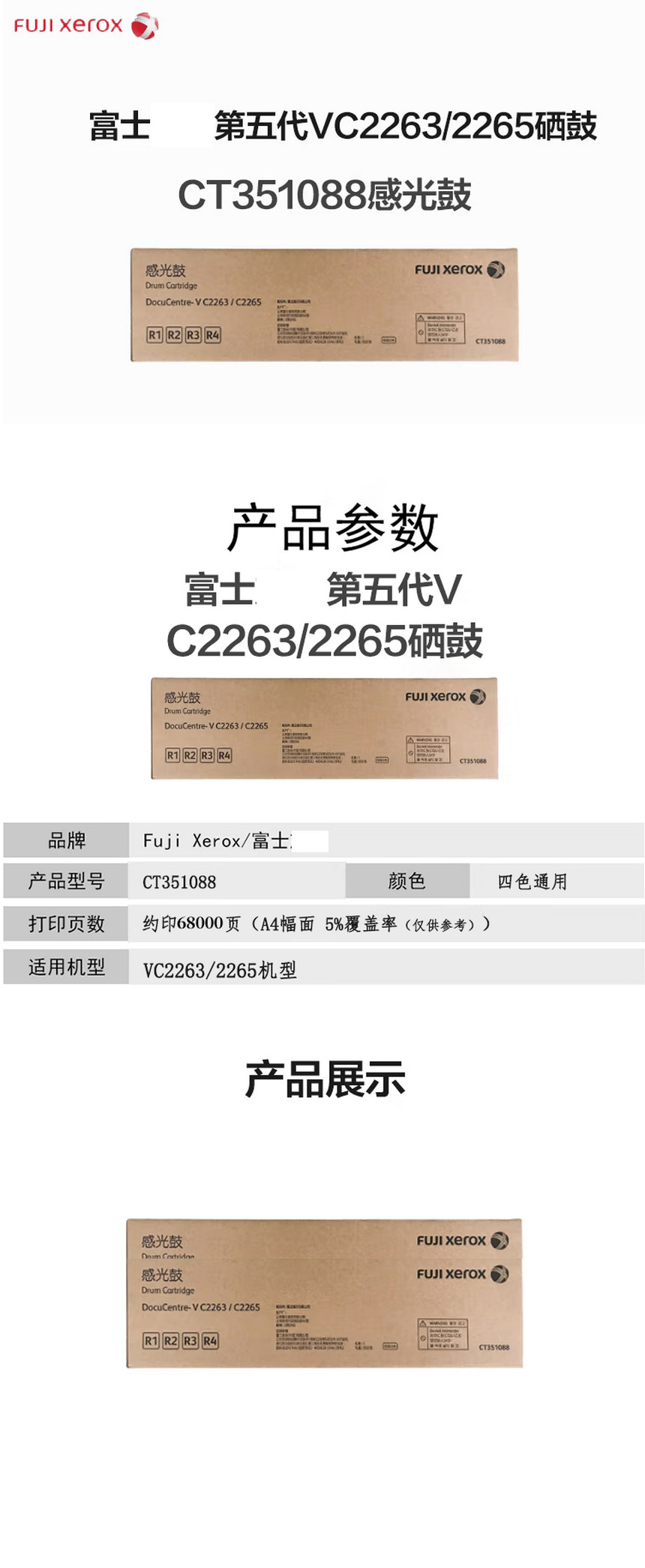 • 富士胶片 CT351088 感光鼓组件硒鼓 (适用五代VC2263/2265/C2060/C2560机型) 打印页数:约68000