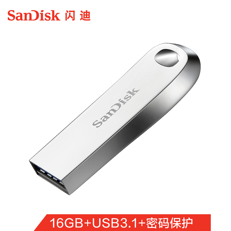 • 闪迪CZ74 16GB USB3.1 U盘酷奂银色 读速150MB/s 金属外壳 内含安全加密软件