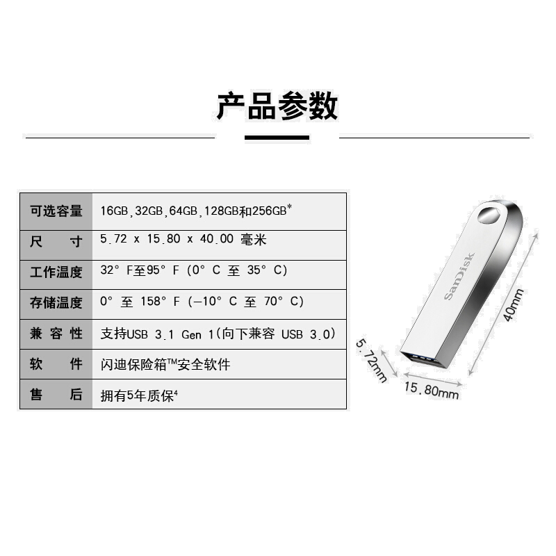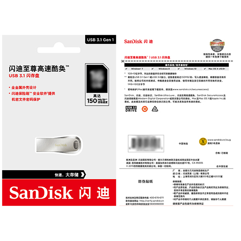 • 闪迪CZ74 32GB USB3.1 U盘酷奂银色 读速150MB/s 金属外壳 内含安全加密软件