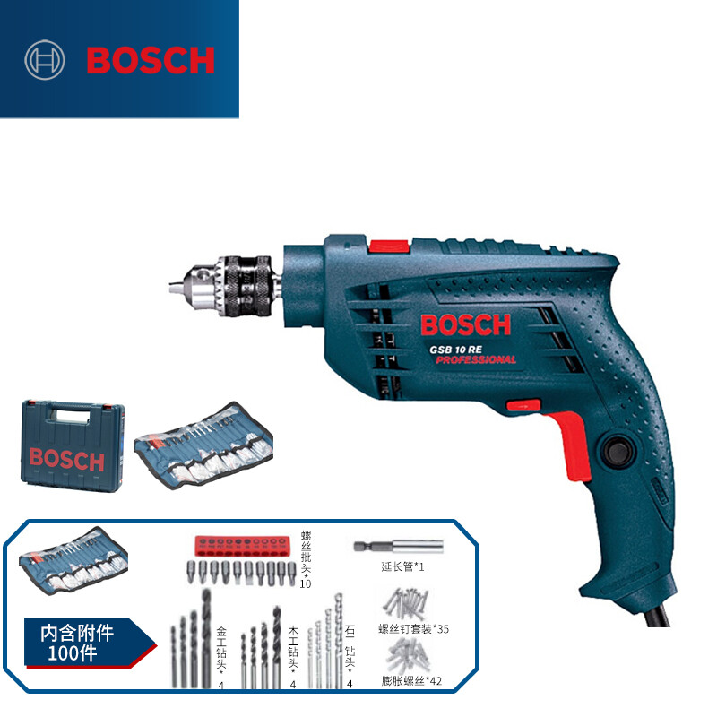 博世 GSB 10 RE set 冲击钻 插电式手电钻工具箱 (100附件套装)