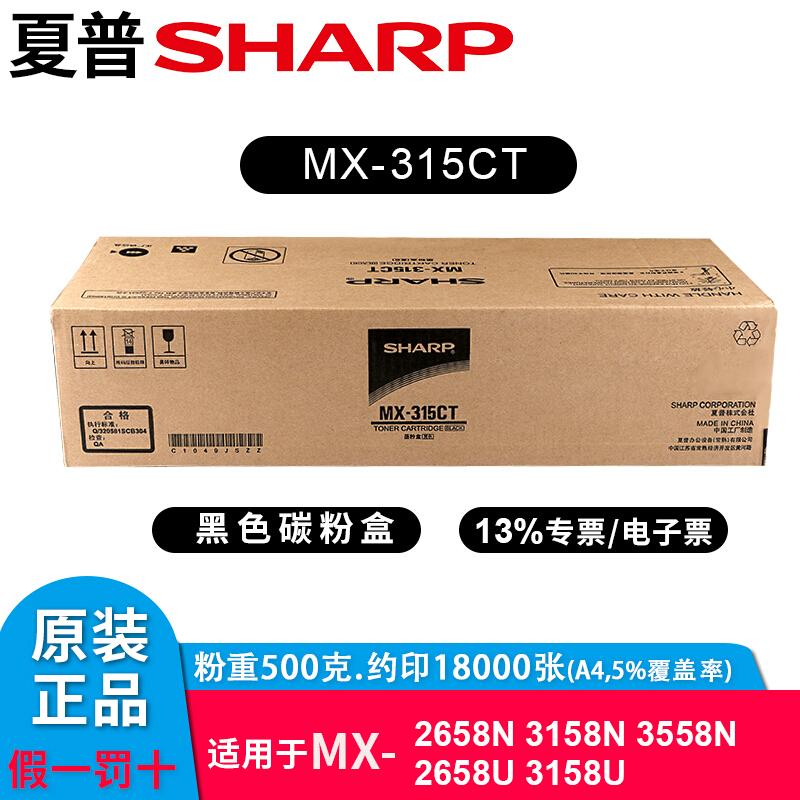 • 夏普(SHARP)MX-315CT黑色墨粉 适用MX-M2658N/3158N/3558N/含NV或U