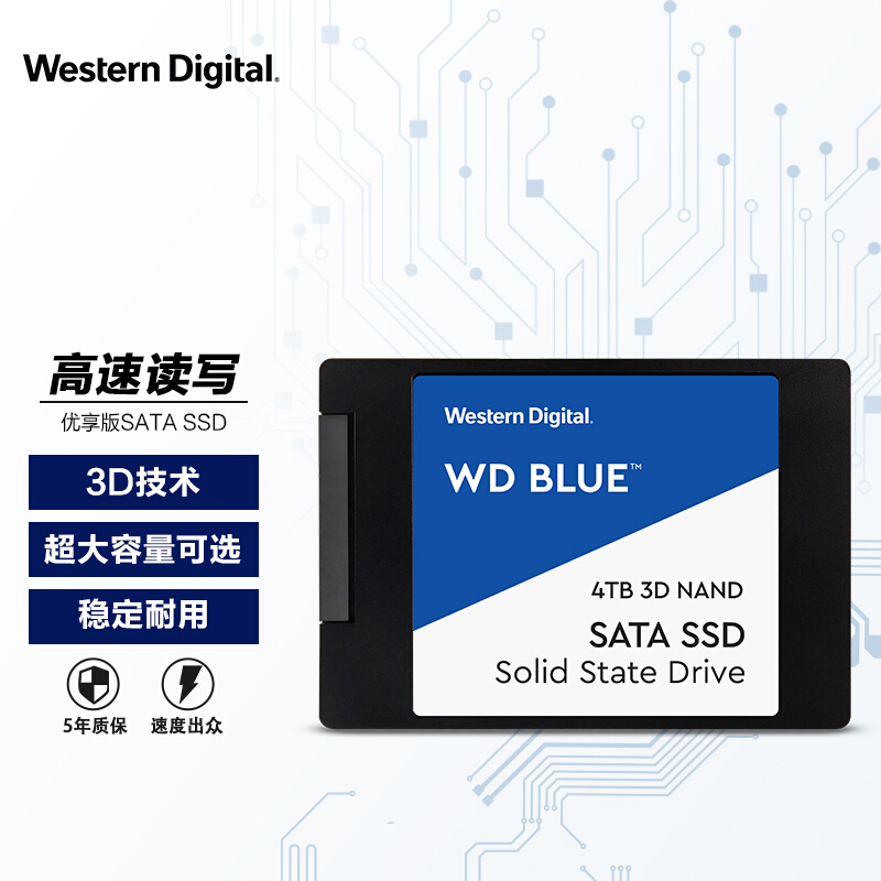 • 西部数据(WD) 4T SSD固态硬盘 SATA3.0 Blue系列 3D技术 高速读写 大容量 五年质保