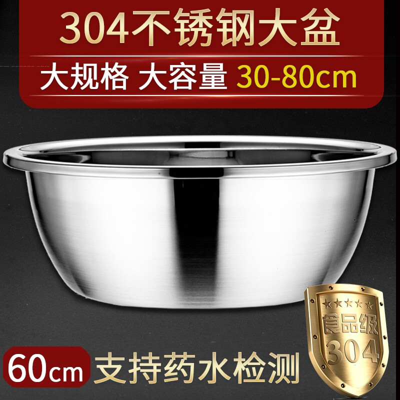 • 304不锈钢大盆加厚加深洗菜盆大盆和面盆特大号洗澡盆家用菜盆脸盆洗脚盆厨房食堂多用盆 【304】60cm