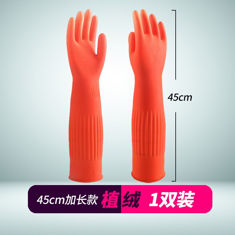 • 橡胶手套加长款胶皮乳胶劳保工作耐磨耐用加厚保暖加绒长一体植绒洗碗洗衣服女手套 45cm加长一体绒1双装 M(中码)