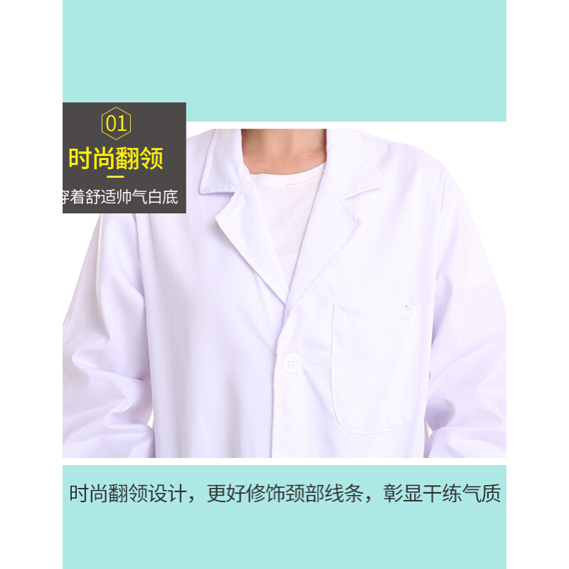 • 长袖白大褂实验服食品厂化学试验工作服工装春秋冬装 薄款松紧袖口 180/XXL