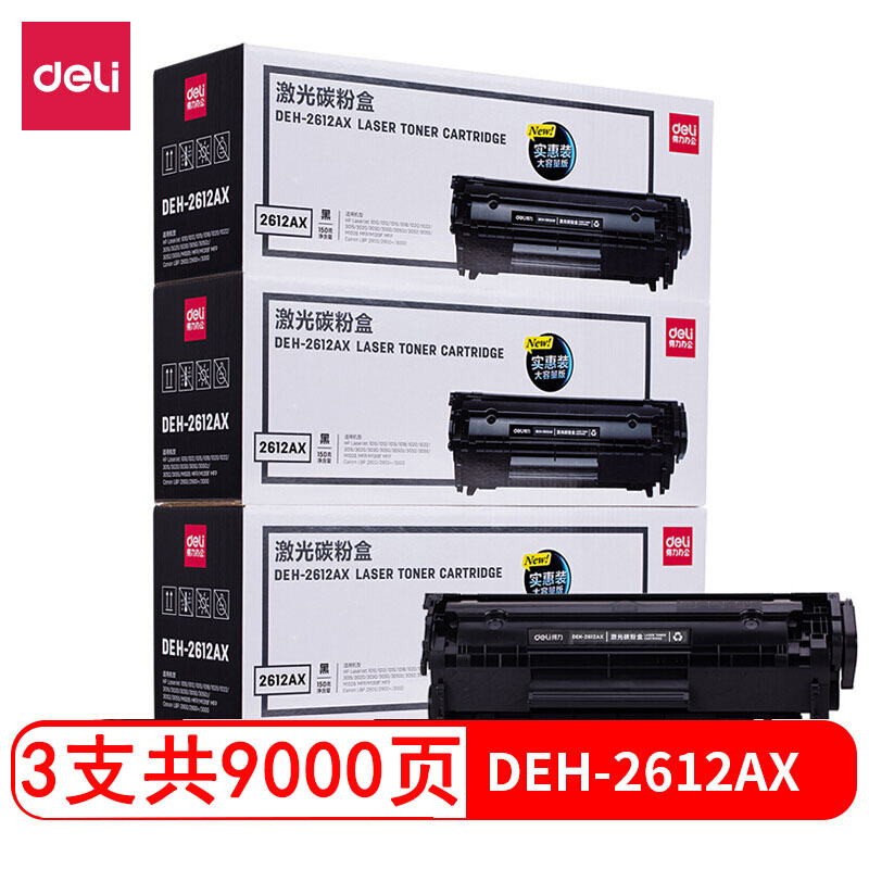 - 得力(deli)DEH-2612AX3大容量硒鼓3支装 12A打印机硒鼓 惠普HP1020plus M1005 1010 1012 1015 3050 M1319f
