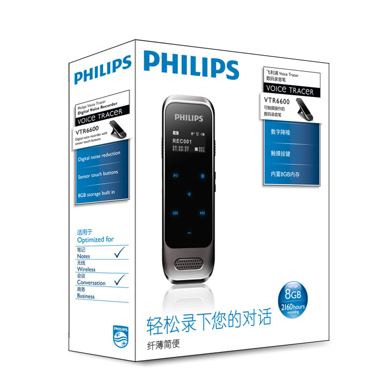 • 飞利浦VTR6600 8GB 学习记录 高清触摸数字降噪录音笔 锖色