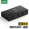 • 绿联 HDMI分配器一进二出 1进2出4K数字高清视频分屏器 笔记本电脑电视盒子接显示器投影仪一分二 黑色 40201