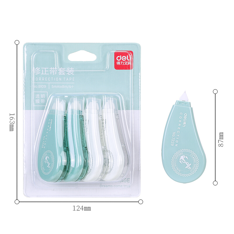 得力5mm*8m修正带组合套装8109商品毛重:80.00g商品产地:中国大陆类型:涂改液/修正带/修正贴 (4只/卡)