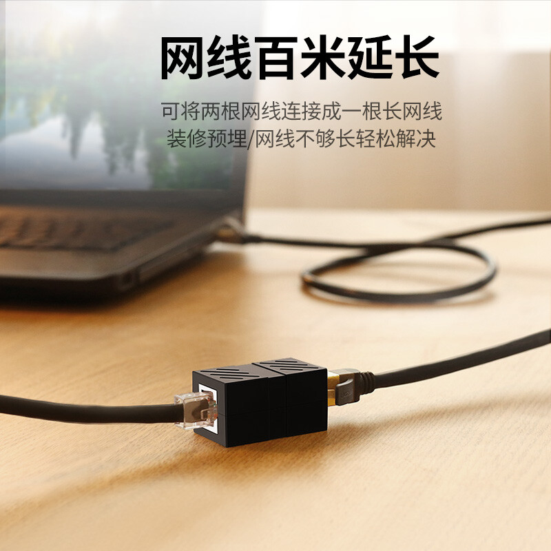 • 绿联 网线转接头 对接头 网络延长连接器 RJ45网口直通头水晶头双通头接口5/6/7类网线通用 黑色10个装