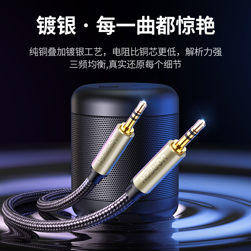 • 绿联 3.5mm公对公镀银音频线 AUX车载音响连接线 手机平板笔记本电脑电视连头戴式耳机音箱功放对录线1米