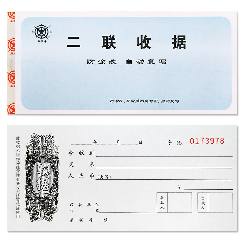 成文厚 256-1 二联无碳复写收据19*8.8cm 防涂改二联收款收据(25份/本)