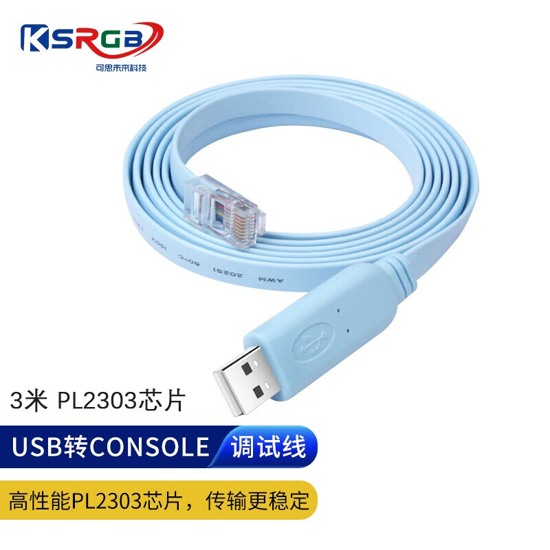 - 可思未来 USB转console调试线 rj45线h3c配置线 适用思科腾达华为TP-LINK交换机路由器 3米(PL2303芯片)