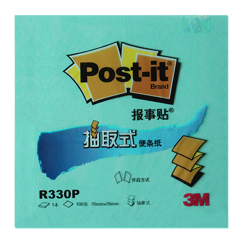 3M Post-it报事贴 R330 抽取式便条纸 可再贴便利贴 便签纸 76*76mm 蓝绿色 1本